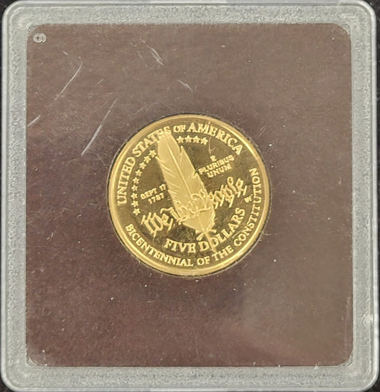 1987-W $5 Constitution, DCAM Modern Gold Commemorative Proof Coin