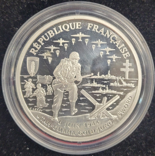 1993 1 Franc 900% Silver D-Day Memorial Bullion