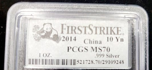 2014 China Panda 10 Ten Yuan Solid .999 Silver 1oz Coin PCGS MS70 First Strike